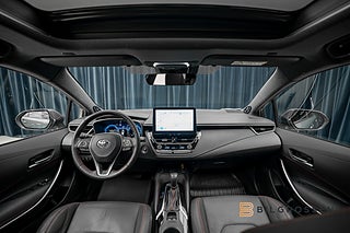 Utrustningsmässigt är bilen välutrustad med GR Sport-paket som förstärker bilens sportiga karaktär både exteriört och interiört. För en ljus och luftig kupé finns ett öppningsbart panoramaglastak, medan JBL-ljudsystemet levererar en högkvalitativ ljudupplevelse. Föraren får viktig information direkt i synfältet via Head-Up Display, och parkering underlättas tack vare backkamera. På längre resor bidrar adaptiv farthållare till en mer avslappnad och säker körning.