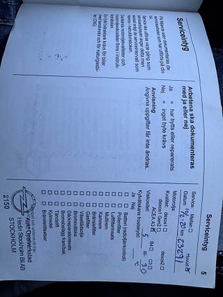 - Komplett ifylld Servicebok