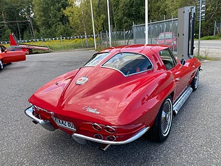 En riktig legend inom bilhobbyn, split window Corvette finns bara detta året som också var det första för sportkupé och namnet Stingray, Helrenoverad inkl ram blästrad o lackad röd, Bromsskivor fram och trummor bak renoverat samtliga, inredning helt ny inkl innertak, stolar helskinn inkl racingbälten 4 punkt, motor Donovan block helaluminium 350cui strokad till 383 cui även toppar och ventilkåpor, Toppar full CNC frästa AFR toppar, Lunati vev och kam och kamdrivning, Vipparmsbrygga påkostad rullvippor + rullkam, Förgasare Weber 48or 4st med halsringar 44 ( kostnad ca 45000kr /st ), Muncie M21 Finsplincat låda Hurst spak, Krängningsarmar uppgraderade till bättre väghållning inkl uniballs, elektrisk cutout avgas med fjärr styrning, bakaxel 3:36 utväxling nyrenoverad, Sidepipes ( options tillval ) 3 och en halv tum, sidokrom i gälarna option tillval , servostyrning, bromsservo , detta är en superhäftig Corvette med bra historik som blivit mycket påkostad genom åren, ring eller maila för visning