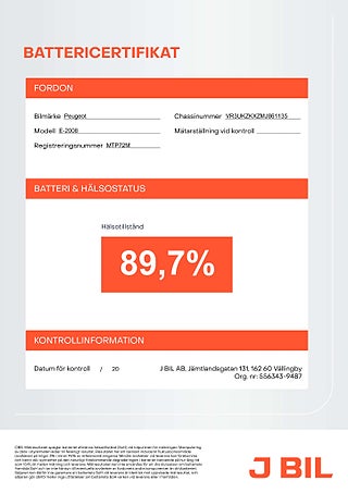 MärkePEUGEOTFordonsår2021I trafik2021-11-24MiljöklassELUtsläppsklassELFärgSvart