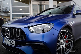 Nu i lager en riktigt grym Mercedes E63 S T 4MATIC+ 4.0 V8 612hk i färgen Manufaktur Magno briljantblå med svart exklusiv läderinteriör och endast 2300mil!