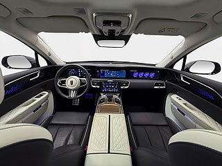 Utrustningen inkluderar bland annat: AWD, CCS Snabbladdning, Infällbara Dörrhandtag, Nivåreglering, Öppningsbart Panorama Glastak, Hellädersäten, 6-sits, Eljusterbara säten, Backkamera, Parkeringsassistans, Parkeringssensorer fram och bak, Keyless Entry & Start, Elbaklucka, Elfällbara baksäten, Uppvärmda säten, Säten med minne, 4 Klimatzoner, Eljusterbar ratt med minne, Uppvärmd ratt, Läderratt, Multifunktionsratt, Digital Cockpit, Bluetooth, WiFi Hotspot, Mobilt Nätverk (4G), USB-uttag, Trådlös Telefonladdare, 12 st. Högtalare, Navigation, LED-ljus, Adaptivt Helljus, Ljussensor, Regnsensor, Guideljus, Stämningsbelysning, Adaptiv Farthållare, Körfilsassistans, Vägfilsassistans, Döda Vinkeln-varnare, Medlutningsassistans, Backstartassistans, Bromsassistans, Kollisionsvarning fram, Dörröppningsvarning, Val av körprofil, Värmeisolerande rutor, Tonade rutor, Rails, ISOFIX, Larm, Auto Hold, 4WD, Taklucka, 6 sits, 6 säten, m.m.