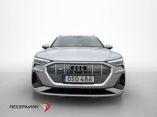 Audi e-tron 55 quattro S line med kraftfull fyrhjulsdrift och exklusiv utrustning. Panoramatak, B&O-ljud och Matrix LED ger en premiumupplevelse, medan 360° kamera, luftfjädring och dragkrok gör den både smidig och bekväm i vardagen.