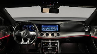 Invändigt kliver du in i en modern premiumkupé med digital widescreen display, ambientbelysning och högkvalitativa materialval. Den svarta interiören tillsammans med AMG detaljer och Burmester ljudsystem skapar en lyxig och sportig känsla i hela kupén.