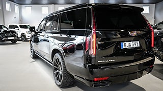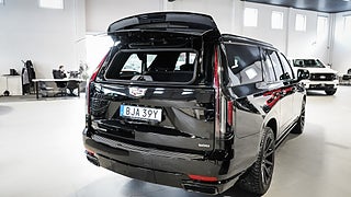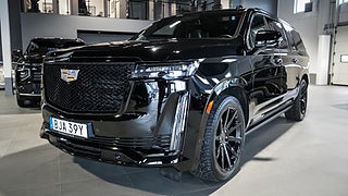 Momsbil 50% avdragbar moms vid leasing (momsbil) – En ägare såld fabriksny av Exclusive Cars Cadillac Aukt. Handlare - 2023 Cadillac Escalade ESV Sport Platinum 4WD – Absolut toppmodell fullutrustad – 6.2L V8 DI VVT L87 426 hk och 624 Nm – Flex Fuel E85 2461kr årsskatt – 10-stegad automat MHS med overdrive tow haul och tap up tap down – single speed active transfer case NP0 med push button controls – fyrhjulsdrift part och full time 4WD – elektronisk diffspärr bak G96 electronic limited slip differential – Magnetic Ride Control suspension Z95 – Air Ride Adaptive Suspension F47 –– Black Raven – Jet Black - Tillvalsutrustning denna bil – Kompletta 22tums svarta D54 (Nokian friktionsdäck) vinterhjul ingår – Sommarhjul 22tums Cadillac Sport Platinum - Preferred equipment group 1SH – Touring package ST1 (soft closing front and rear doors – illuminating front and rear sill plates – AKG Studio Reference 36 speaker audio system med 3D surround navigation rendering och front passenger volume control – Adaptive Cruise Control – reconfigurable full color head up display UV6 – rear camera mirror DRZ – rear Cross Traffic Alert UFG – rear seat entertainment system UW9 med dual 12.6tum HD screens och HDMI ports – power lumbar massage driver seat AF6 – power lumbar massage front passenger seat AKE – heated and ventilated driver and front passenger seats KQV – theft deterrent alarm system UTR med content theft alarm och self powered horn – power panoramic tilt sliding sunroof C3U – enhanced automatic parking assist UKZ – enhanced automatic emergency braking UGN – Reverse Automatic Braking UVZ – hitch guidance with hitch view PZ8 – smart trailer integration indicator UET – trailer side blind zone alert UKV – door lock and latch shields NWM) – DCK cooled console med console refrigerator freezer mode covered storage – UV3 night vision – B3L power retractable assist steps med perimeter lighting – CWA rear camera mirror washer – SMD 22tum 12 spoke polished alloy wheels Dark android finish – XCG 275 50R22SL all season BW tires - Standardutrustning – full semi aniline leather seats med mondrian quilting – platinum interior trim IWD med leather wrapped instrument panel console och upper door samt sueded microfiber headliner och pillars – 16.9tum diagonal OLED infotainment screen UDV – trådlös Apple CarPlay och trådlös Android Auto PPW – trådlös ljudstreaming och röststyrning – 3 skärmar fram och 2 skärmar rad två – 14.2tum gage cluster display – 360 kameravyer – garage door opener – trådlös laddning fram – Keyless access och push button start – remote start – soft close doors – uppvärmd ratt med el tilt och teleskop – framsäten 12 way el med värme ventilation och massage – 2 presets minne för förarstol speglar och ratt – andra raden bucket seats med recline och tumble – tredje raden 60 40 split bench power fold into floor – 8 sits - Nybilsgaranti AEC t.o.m. 2027-07-04 / 20 000mil ingår – Vi byter gärna in din bil!