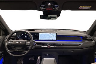 Invändigt möts du av en rymlig och påkostad kupé med sex individuella sittplatser, högkvalitativa material och en modern, digital förarmiljö. De stora skärmarna, navigationssystemet, Apple CarPlay och Android Auto ger en smidig och uppkopplad körupplevelse. Gott om benutrymme, komfortabla stolar och smarta förvaringslösningar gör EV6 till en utmärkt långfärdsbil.