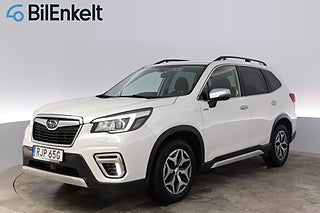 'RJP65G' Nu har vi fått in denna riktigt fina och välutrustade Subaru Forester e-Boxer AWD Lineartronic Active Hybrid i lager för omgående leverans. Avdragbar moms - går att företagsleasa! Senaste service utförd vid 8.943 mil. Endast 1.988 kr i årsskatt samt en förbrukning från låga 0.64 l/mil. Fint utrustad med bland annat backkamera och dragkrok samt dödavinkelvarnare och EyeSight. Varmt välkommen in till oss på BilEnkelt för att beskåda denna härliga Subaru på närmare håll samt för provkörning!