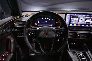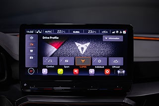 Detta exemplar är dessutom konfigurerat med: 19" Exclusive Sport Black/Copper-fälgar, Skålade sportstolar med svart läderklädsel, 360°-kamera, CUPRA-paket VZ, Keyless Go samt Apple CarPlay och Android Auto.