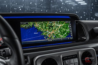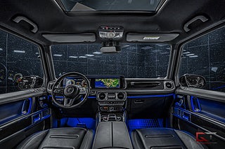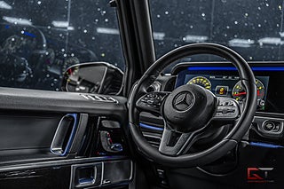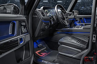 Just denna G-klass har en stilren exteriör med den mångpopulära lacken "Obsidian Black Metallic" och till de kombineras kromade detaljer och 19" stora fälgar ihop för en snyggare exteriör. På insidan finner man i vanlig ordning en läcker kupé med komfortabla säten i svart läder och framför föraren finner man den sportiga multifunktionsratten i läder. Dekorinläggen klär kupén stilrent med intag av aluminium och det kombineras bland annat med det högkvalitativa surroundljudsystemet från Burmester, samt med den stora glastakluckan som genomsyrar den tyska kupén.