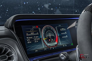 Exteriören kläs exklusivt i den påkostade lacken "MANUFAKTUR Oliv Metallic" som kombineras hett med de populära och påkostade 22" monoblock fälgarna runt om och här möts man även av svarta detaljer som indikerar på att AMG Nightpackage är inkluderat. På insidan fortsätter det heta temat med aktiva multikonturstolar som kläs i MANUFAKTUR nappaklädseln "Platina White/Black" och de sammansätts av rombdesign. I den främre raden kan man avnjuta såväl värme som ventilation och härlig sätesmassage. Dekorinläggen klär kupén exklusivt med intag av glansigt kolfiber och det kombineras bland annat med det högkvalitativa 3D-surroundljudsystemet från Burmester, samt med den öppningsbara glastakluckan som genomsyrar den tyska kupén.