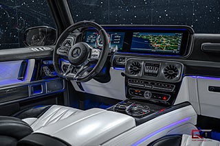 Utrustad med bland annat: AMG Performance Paket - AMG Drivers Package - G Manufaktur interiör (Rombdesign) - MANUFAKTUR Lack - 22" Monoblock fälgar i Matt Svart inkl. Rödlackerade Bromsok - Dekorinlägg i AMG Kolfiber - Aktivt Multikontursätespaket Plus - Massage Säten - Ventilerade Säten - AMG Nightpackage - AMG Nightpackage II - Parkeringsvärmare - AMG Performance Ratt i Kolfiber/Mikrofiber - Elektrisk Glastaklucka - Burmester 3D Surroundljudsystem - Dragkrok