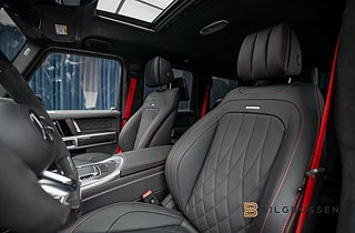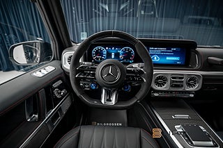 Denna Mercedes-Benz AMG G 63 representerar det yttersta inom lyx, prestanda och rå styrka. Under huven sitter en kraftfull 4,0-liters V8 bensinmotor som levererar hela 585 hk och 850 Nm, i kombination med en 9-stegs automatisk växellåda och permanent AWD fyrhjulsdrift. Resultatet är en imponerande acceleration där bilen klarar 0–100 km/h på endast 4,4 sekunder, samtidigt som den behåller sin ikoniska terrängkapacitet. Snittförbrukningen ligger på cirka 1,48 l/mil, fullt rimligt sett till bilens prestanda.
