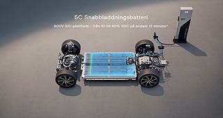 DC-laddning: upp till 525 kW (10-80 % på ca. 12 min)**