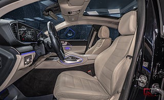 Just detta mångpopulära exemplar bär på den stilrena kulören "Black" som kombineras med 20" stora AMG Dubbelekerfälgar och svarta detaljer längs exteriören. På insidan finner man den högkvalitativa kupén med komfortabla säten klädda i beige läder och i den främre raden kan man avnjuta såväl värme som härlig sätesventilation. Dekorinläggen klär kupén stilrent och snyggt med intag av öppenporig ek och det kombineras bland annat med det grymma surroundljudsystemet från Burmester, samt med det stora och öppningsbara panoramaglastaket som genomsyrar den tyska kupén