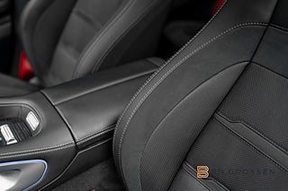 Exteriören i eleganta Alpin Grå kombineras med AMG-detaljer och Nightpackage, vilket ger bilen ett sportigt och exklusivt uttryck. Invändigt möts du av en lyxig kupé klädd i svart Nappa-läder med Anthracite-inslag, där både komfort och kvalitet står i fokus.