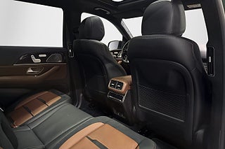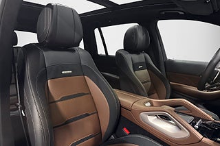 Kommer i läckra Emerald Green Metallic vilket kombineras med 22" AMG-fälgar och en interiör med Multicontourstolar i brunt Premiumläder. Framstolarna har massagefunktion samt bjuder på både uppvärmning samt ventilation, andra sätesraden är elektriskt justerbara och tredje raden är elektriskt fällbara.