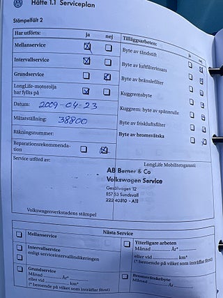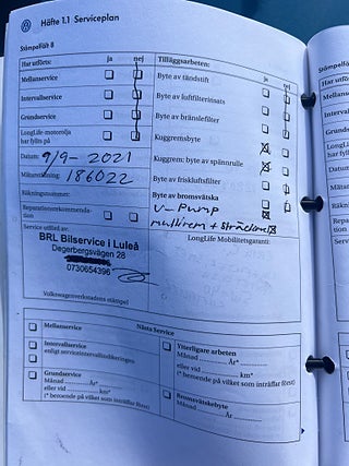 Fordonets historik - 37 händelser finns registrerade