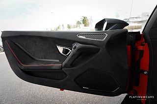 Nu i lager: den otroliga Lamborghini Huracán Sterrato 5.2 V10 AWD, 610 hk, i exklusiva Arancio Xanto Matt med svart läder/alcantara-interiör inkl orange stitching. Endast 500 mil och MOMS/VAT finns.