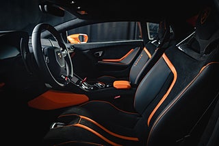 Lamborghini Stockholm presenterar detta exemplar av Lamborghini Huracán i kulören Arancio Borealis med endast 116 mil.