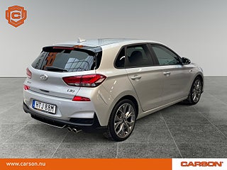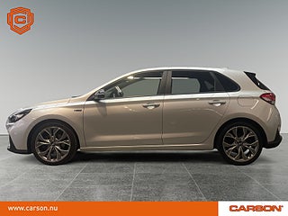 Beskrivning: Denna Hyundai i30 med N?Line?paket erbjuder en sportig, modern och engagerande körupplevelse där den effektiva 1.4 T?GDi?motorn på 140 hästkrafter levererar en pigg och alert respons. Den manuella växellådan ger en direkt och aktiv känsla bakom ratten, samtidigt som chassit är avstämt för att ge en stabil och trygg körning både i stadstrafik och på landsväg. N?Line?paketet förstärker helheten med en mer dynamisk karaktär, skarpare design och en körkänsla som inspirerar vid varje tur.