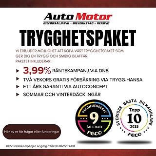Vi erbjuder även montering av dragkrok - extraljus - motorvärmare till ett mycket konkurrenskraftigt pris, 6-36 månaders garanti via AutoConcept, Vi ordnar förmånlig finans via DNB och Wasa Kredit . Räntefri avbetalning upp till 100000 kr för privatpersoner via Svea Ekonomi, Vi erbjuder 14 dagar trygga mil försäkring via trygg-hansa när du köper bil hos oss. Vi kan ordna hemleverans av din nya bil / Motorcykel.