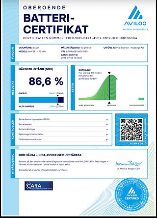 Nu har vi fått hem en Fulslervad NISSAN LEAF 40KW , Ny Batteri test utfärdat 2026-02-06 med 86% och utan anmärkning se bifogade Diagnos test bilder, Bilen är Ny servad vid 11000mil service och Fullservad , ny besiktad 2026-02-09. ingår båda Däck kompletta med LM-fälgar , bilen utrustad med Adaptive farthållare , 360 kamrer , Parkering sensor fram och bak, LED strålkastare , Ratt värme , stol värme , Navigator via App carplay, och mycket mer utrustning , bilen kan nås med 0kr kontant via privat lån eller 0kr kontant till företagare via bilen lån.. Varmt välkommen