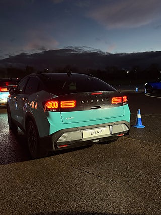 Nissan LEAF förbrukning WLTP blandad körning. kWh/100 km: 13, 7 CO2-utsläpp g/km: 0. Erbjudandet gäller fram till 31.03.2026 och går ej att kombinera med andra avtal eller rabatter. Med reservation för eventuella förändringar. Bilen på bilden är extrautrustad. För mer information kontakta din Nissan-agent.