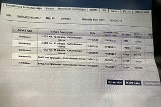 Fordonets historik - 12 händelser finns registrerade