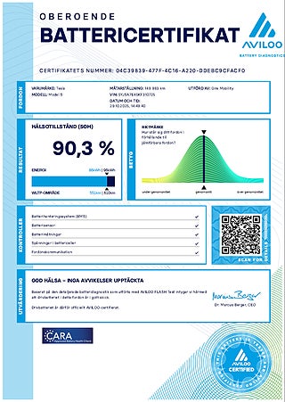 - Hälsokontroll för batteriet är utfört kontakta säljare för mer information