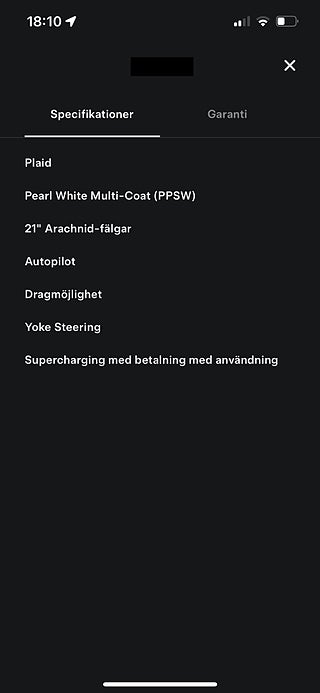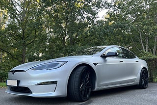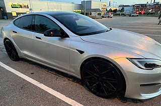Top condition. 1 owner car. Later version with red calipers and HW4. Net Export possible. SÄLJ DIN NYARE PREMIUMBIL TILL OSS. Vi hämtar den hemma hos dig. Vänligen mejla stefan@shiftgear.se. Svensksåld Model S Plaid tillverkad i feb 2023. Uttagen ett helt år senare i feb 2024 av första och ende brukaren, enligt Transportstyrelsen. Obs i Teslas app startade dock garantierna redan från mars 2023. Den senare versionen av Modellår 23. Den har då även de röda bromsoken som kom i produktion från januari 2023. De har förbättrad prestanda jämfört med de tidigare svarta bromsoken. Bland annat bättre värmetålighet och minskad bromsfading vid hård körning. GÅR ATT LEASA för företag. Denna kan alltså bli din nya tjänstebil. Fyrhjulsdriven. En (1) ägare. Körs av en återkommande Teslaerfaren kund hos oss. Hårdvara 4 (HW4), vilket exteriört enklast syns på den röda linsen i sidokameran. Bilen är original pärlemovit men folierad i satinsilver. Även innanför dörrarna i dörrkarmarna sitter folie i mattsvart, liksom på speglar mm. Folieringen gjordes när bilen var ny. Yokeratten som 2024 kostade extra att beställa ny. I denna bil är Yoke av den Nya versionen (bytt efter att bilderna togs). Skillnader är att den har sömmar i sidan, tutan i mitten och en kameraknapp där tutan satt förut. Tesla erbjuder möjlighet att ersätta Yoke mot en rund ratt i efterhand mot tillägg, men inte tvärtom. Plaid är efterföljaren till Performance Ludicrous. Senaste Toppmodellen med bl.a 1020 hk, en tredje motor, extrem acceleration och Plaid Track Mode för bättre banprestanda och kraft i riktigt hög fart. Tri Motor fyrhjulsdrift. Svensksåld bil med Alla Teslas garantier. Nybilsgaranti 4 år/8000 mil och Garanti på batteri och drivlina i 8 år/24 000 mil. 21 tum Vossenhjul på sommaren. Kompletta Tesla original vinterhjul på 21 tum Arachnidfälgar från fabrik, med Michelin X-Ice dubbfria friktionsdäck i bra skick (ser ut som på den sista bilden). Vi ordnar finansiering. LEASING för företag. Den här bilen finns i Västergötland. Hos Shiftgear har du sedan 2007 alltid kunnat reservera din önskade bil tryggt på distans. Förutsättningslöst och utan köptvång om du ej är nöjd vid hämtning. Vi förbereder varje affär noga så att du vet exakt vad du har att förvänta dig. VILL DU HA MÖJLIGHET ATT FÅ MAXIMALT BETALT FÖR DIN NUVARANDE BIL MEDANS DU FORTSÄTTER NYTTJA DEN? Då kan du välja att anlita Shiftgear för att finna en köpare. Tidseffektivt och bekvämt på distans, oavsett var du bor. Vi förmedlar över hela landet till köpare som beställer från Sverige och från övriga Europa. Ett tryggt och smart samarbete för dig som inte måste sälja på dagen.