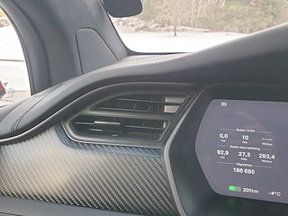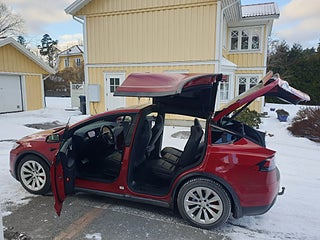 1 owner car. Export possible. SÄLJ DIN NYARE PREMIUMBIL TILL OSS. Vi hämtar den hemma hos dig. Vv mejla stefan@shiftgear.se. Model X P100D PERFORMANCE LUDICROUS AWD med bara EN (1) äg i fint skick. Privatägd. Återkommande kund som vi också har sålt tidigare Teslor åt. Har kört Model X sedan modellen kom 2016. Vi sålde hans första Model X under 2019 och därefter köpte han denna helt ny. Ägaren tar noga hand om sin bil ***Se ca 55 bilder på bytbil.com*** Han har haft PPF i fronten o speglar från dag 1 (Paint Protection Foil). Innan Nybilsgar löpte ut tecknade han Teslas förlängda Garanti o valde det längre alt på upp till +8000 mil. Bilen hade därför Utökad Garanti (Extended Warranty Insurance) mellan 8000-16000 mil o mängder av småfix blev gjort under den tiden (se skärmdump på gar). Främre skivor o belägg bytta vid 18700 mil i feb 26 +rengöring bromsok. Bakre drivenhet bytt på garanti i sep 25 vid 17400 mil. Halfshafts vid 16200 mil. Kupé/HEPA-filter vid 15500 mil. Ombordladdare Gen 3 vid 18790 mil i mars 26. All historik finns dokumenterad sen bilen var ny. Chrome deletad. Dvs kromade detaljer är svartmaskerade. Utöver Autopilot har denna bil FSD Full Self Driving redan fr fabrik, dvs Total Självkörningsförm när det blir möjligt. Sjusitsig 7-sits version i senaste konfig. Dvs baksätet är fällbart även i rad 2. Delbart o skjutbart också. Du får då ett stort lastutrymme. Ventilerat läder med kylfläktar samt mer markanta vita kontrastsömmar. Detta återkom på P100D-modeller under 2019 men bara under några mån tillverkn. Senare tillverkade Model X 2019-2020 har inte klima i sätena eller samma sömmar. Tillverkad i mars o uttagen i juni 2019. Den röda färgen i flera lager var Teslas då dyraste tillvalslack. CCS-laddning har installerats, för att kunna ladda på V3 Superchargers. Sommarhjul svarta Onyx 22-tumshjul (andra bilden). Vinterhjul Tesla original på Slipstream fälgar med nya dubbfria Pirelli Ice Friction från oktober 2025. Stora 100 kWh batteriet. Från fabrik har bilen laddare med högre strömstyrka 24A. Fyrhjulsdriven XP100DL. Dual Motor fyrhjulsdrift AWD. Denna Tesla har Garanti på batteri och drivlina i 8 år med obegr körsträcka, till juni 2027. Den här bilen finns i Stockholm. Hos Shiftgear har du sedan 2007 alltid kunnat reservera din önskade bil tryggt på distans. Förutsättningslöst och utan köptvång om du ej är nöjd vid hämtning. Vi är en ledande mäklare av bl.a. Tesla sedan märket kom. Vi erbjuder löpande ett brett utbud av samtliga modeller S 3 X Y Long Range, Performance och Plaid. Vi förbereder varje affär noga så att du vet exakt vad du har att förvänta dig. VILL DU HA MÖJLIGHET ATT FÅ MAXIMALT BETALT FÖR DIN NUVARANDE BIL MEDANS DU FORTSÄTTER NYTTJA DEN? Då kan du välja att anlita Shiftgear för att finna en köpare. Tidseffektivt och bekvämt på distans, oavsett var du bor. Vi förmedlar över hela landet till köpare som beställer från Sverige och från övriga Europa. Ett tryggt och smart samarbete för dig som inte måste sälja på dagen.