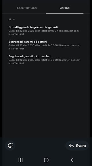 All Black. Net Export possible. 1 owner car. Norrlandskörd långa sträckor i taget. SÄLJ DIN NYARE PREMIUMBIL TILL OSS. Vi hämtar den hemma hos dig. Vv mejla stefan@shiftgear.se. Svensksåld Model X Plaid. Efterföljaren till Performance Ludicrous. Senaste Toppmodellen med 1020 hk. Plaid är 6-sits med de fina stolarna och den läckra mittgången. Tri Motor fyrhjulsdrift. P-sensorer, vilka nu har försvunnit ur produktion. Yokeratt som senare kostade extra att beställa ny. Vill du ändå ha en rund ratt erbjuder Tesla möjlighet att ersätta Yoke mot en rund ratt i efterhand mot tillägg, men inte tvärtom. Alla Teslas garantier. Nybilsgaranti 4 år/8000 mil och Garanti på batteri och drivlina i 8 år/24 000 mil. Vi ordnar finans. Momsbil för företagsleasing. Tillverkad i okt 2022, vilket ger lägre förmånsvärde än för bilar tillverkade 2023. Uttagen i dec 2022. Modellår 23 med bokstav P som 8e tecken bakifrån i chassinr. Kompletta vinterhjul Tesla original 20 tum Cyberstreamhjul, dvs likadana fälgar som på sommaren. Med Nokian odubbade däck (se närbild). Den här bilen finns i Västerbotten. Hos Shiftgear har du sedan 2007 alltid kunnat reservera din önskade bil tryggt på distans. Förutsättningslöst och utan köptvång om du ej är nöjd vid hämtning. Vi är en ledande mäklare av bl.a. Tesla sedan märket kom. Vi erbjuder löpande ett brett utbud av samtliga modeller S 3 X Y Long Range, Performance och Plaid. Vi förbereder varje affär noga så att du vet exakt vad du har att förvänta dig. VILL DU HA MÖJLIGHET ATT FÅ MAXIMALT BETALT FÖR DIN NUVARANDE BIL MEDANS DU FORTSÄTTER NYTTJA DEN? Då kan du välja att anlita Shiftgear för att finna en köpare. Tidseffektivt och bekvämt på distans, oavsett var du bor. Vi förmedlar över hela landet till köpare som beställer från Sverige och från övriga Europa. Ett tryggt och smart samarbete för dig som inte måste sälja på dagen.