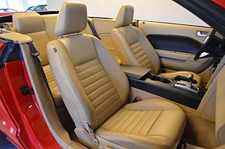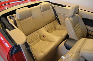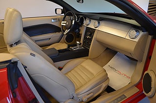 Ford Mustang GT V8 Cab Automat i snyggt utförande i Torch Red med ljusbeige helläderinteriör samt beige softop. Välvårdad bil i fint skick, besiktigad till 2026-10! Utrustad med: Elmanövrerad förarstol, JVC stereo med Bluetooth anslutning, Fjärrstyrt C-lås med dubbla nycklar, Antisladdsystem ESP med antispinn, Farthållare.