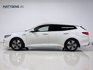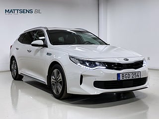 Kia Optima Sport Wagon Plug-in Hybrid 205hk - elegant och rymlig kombi med modern laddhybridteknik som ger både låg förbrukning och smidig körning. Den automatiska växellådan och möjligheten att köra på el gör den idealisk för både stadstrafik och längre sträckor. Välutrustad med bland annat ventilerade säten, harman/kardon ljudsystem och backkamera. Ett utmärkt val för dig som söker en praktisk, bekväm och ekonomisk familjebil.