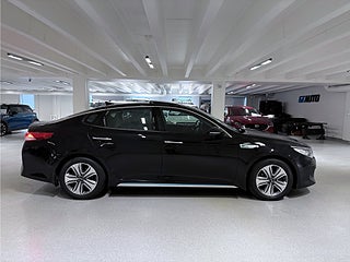 Passa på att köpa en svart Kia Optima 2.0 Executive, en sedan av årsmodell 2017, växellådan är automatisk och motorn är på 205 hk och drivs med bensin och el miljöklass Euro 6.