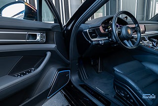 En bil som förenar två världar, lyxig komfort och brutal prestanda. Panamera 4 E Hybrid erbjuder en harmonisk körupplevelse i vardagen med sin tysta eldrift, avancerade luftfjädring och generösa utrymmen. Kupén präglas av exklusiva materialval som läderklädda sportstolar, Alcantara innertak och modern teknik som Head up display, Bose Premium Sound och Navigation High.