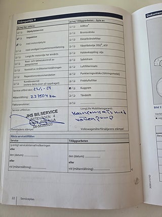 Nybesiktigad, Nyservad, Kamrem bytt vid 22.700 mil