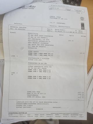 Fordonets historik - 35 händelser finns registrerade