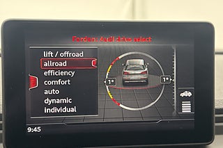 Full S-Line,Quattro,Dragkrok,Luftfjädring,Farthållare,Sportstolar,Sportratt,Parkeringssensorer,Körlägesväljare,Keyless,Bluetooth,Svart innertak,Växelpaddlar,Halvskinn,Elmanövrerad bagagelucka,Rails,Elhissar,Elspeglar,AC,ACC,Isofix-fästen,Stolsvärme,Fyrhjulsdrift,AWD,4WD,Parkeringssensorer bak,AC och klimatanläggning,Interiör i skinn eller delvis i skinn