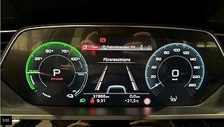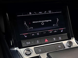 Utrustningen inkluderar bland annat: AWD, CCS Snabbladdning, Audi Drive Select, Dynamiskt Styrrespons, Dragkrok, Backkamera, Parkeringssensorer fram och bak, Hellädersäten, Elsäte förare med minne, Digital Cockpit, Pekskärm, Navigation (även i förardisplay), Bluetooth, USB-C-uttag, Sätesvärme, Värmeisolerande rutor, Strålkastarspolare, Läderratt, Multifunktionsratt, Rattpaddlar, Farthållare, Elbaklucka, Trafikskyltigenkänning, Ljussensor, LED-ljus, Regnsensor, Vägfilsassistans, Nödfallsassistans, Bromsenergiåtervinning, Stöldlarm, Rails, ISOFIX, 4WD, Audi Connect, Helskinn, Auto Hold, m.m.