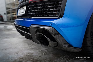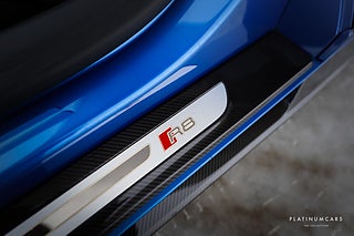 Utrustning: Quicksilver sportavgassystem med OPF Delete - 80.000kr, Dynamisk styrning, Kolfiberpaket exteriört, Kolfiberpaket interiört, Sätesinställning elektrisk & pneumatiskt inställbar för båda framsätena med minne, 20” aluminiumfälgar 5 dubbeker-design dynamic-design i titangrå matt, Ytterbackspeglar i kolfiber Audi exclusive, Sideblade mytsvart metallic, Helläderutrustning finnappa, Audi phone box, Utökade dekorinlägg i kolfiber, Rutquiltning för finnappa eller helläderutrustning finnappa, Keramiska bromsar rödlackerade bromsok, LED-strålkastare med laserljus ink. Helljusassistent, Garageportsöppnare (HomeLink), Kolfiber instegslister, Parkeringshjälp plus med backkamera, Navigation plus, Bang & Olufsen Sound System, Keyless entry, Audi Drive select, Keyless go, Komfortnyckel mm.
