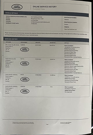 Komplett ifylld servicehistorik
