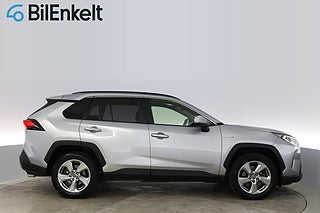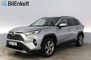 'HKY59Z' Nu har vi fått in denna riktigt fina och välutrustade Toyota RAV4 2.5 Elhybrid Executive Premium i lager för omgående leverans. Full servicehistorik och senaste service utförd vid 6.216 mil. Endast 360 kr i årsskatt samt en förbrukning från låga 0.44 l/mil. Fint utrustad med bland annat JBL Ljudsystem och 360* Omgivningskamera samt panoramaglastak och läderklädsel. Varmt välkommen in till oss på BilEnkelt för att beskåda denna Toyota Hybrid SUV på närmare håll samt för provkörning!