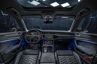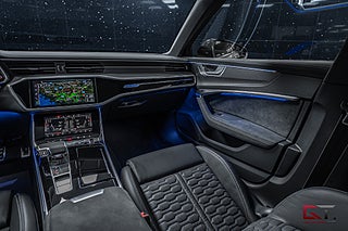Nu har vi fått in ett alldeles kaxigt och välutrustat exemplar, i form av en leasebar och lågmilad Audi RS 6 Performance med en drös av exklusiva tillval, samt med avdragbar moms. Motorn är som bekant Audis V8 på 4 liter som extra mullrar läckert och det är tack vare de påkostade RS-sportavgassystemet. Kraften är ökade 630HK/850NM, som fördelas till alla fyra hjulen via en 8-växlad automatlåda med F1-paddlar. 0-100 km/h avklaras på kvicka 3.4 sekunder och RS 6 fortsätter hela vägen upp till otroliga 280 km/h!