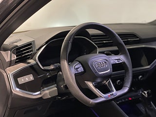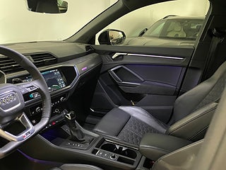 Exteriör:Den eleganta Daytona grå metallic-lacken skiftar vackert beroende på ljuset och framhäver bilens muskulösa linjer. Med RS-paketet, svarta detaljer, stora RS-fälgar och aggressiva luftintag lämnar denna RSQ3 ingen oberörd – den ser snabb ut redan när den står still.
