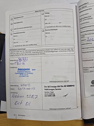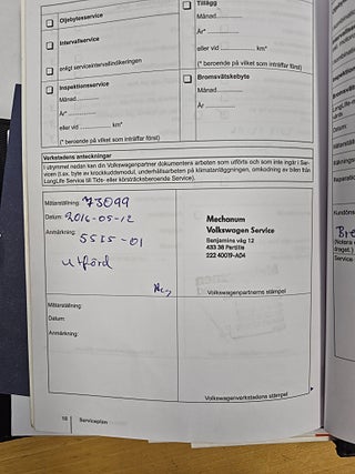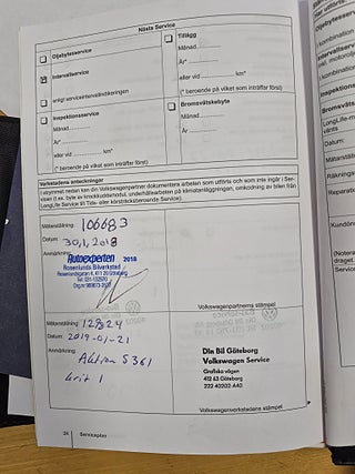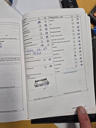 Fordonets historik - 21 händelser finns registrerade