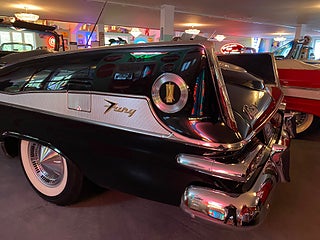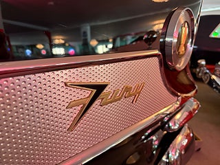 Sport Fury var top of the line nivån inom Plymouth modellerna 1959 och med denna optionsmotor som kallades ”Golden Commando” så var detta en mycket ovanlig bil, utvändig justerbar sidobackspegel, Superfin bil i otroligt bra skick, länk till film om bilen : https://www.youtube.com/watch?v=8z2fKpu6veY&t=358s, Ring eller maila för info och visning