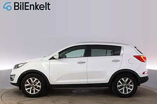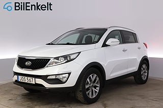 'JOS567' Nu har vi fått in denna fina Kia Sportage 1.6 GDI Limited Edition i lager för omgående leverans. Senaste service utförd vid 15.200 mil. Endast 1.394 kr i årsskatt samt en låg förbrukning från 0.58 l/mil. Fint utrustad med bland annat Backkamera och Navigation (GPS) samt Panoramaglastak och Skinnklädsel. Varmt välkommen in till oss på BilEnkelt för att beskåda denna SUV från KIA på närmare håll samt för provkörning!