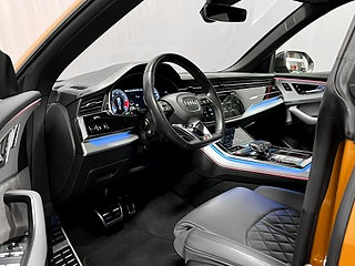 Dragon Orange metallic · Adaptiv luftfjädring (4 Corner) · Sportsäten i Valcona-läder med eljustering och minnesfunktion · Sätesvärme fram och bak · Dekorinlägg i borstad aluminium · Elinfällbara, avbländande sidospeglar med minne · Belysta SQ8-instegslister · Fyrzons Climatronic klimatanläggning · 360° kamera · Parkeringssensorer fram och bak · Audi Matrix LED-strålkastare med LED-bakljus · Strålkastarspolare · Bang & Olufsen 3D Premium Sound System · MMI Navigation Plus · Komfortnyckel med sensorstyrd baklucka och larm · Fjärrstyrd parkeringsvärmare · Variabelt lastgolv · Delbart baksäte med mittarmstöd · Elmanövrerad baklucka · ISOFIX fram och bak · Audi Pre Sense Basic säkerhetssystem · Vägskyltsigenkänning · Filhållningsassistent · Adaptiv farthållare · Däcktrycksövervakning · Audi drive select körprofilsystem · Mörktonade rutor · Läderklädd sportmultifunktionsratt. mm