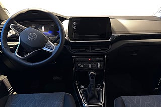 Volkswagen T-Cross LIFE 1.0 TSI DSG7 är den kompakta SUV:en som gör vardagen både smidig och rolig. Den pigga TSI-motorn och den mjuka DSG-lådan ger en lättkörd och bekväm körupplevelse, medan den höga sittpositionen och den flexibla interiören ger bra överblick och oväntat gott om utrymme. Med modern design, smarta säkerhetsfunktioner och praktiska detaljer är T-Cross LIFE det perfekta valet för dig som vill ha en liten SUV med stora möjligheter., Förlängd nybilsgaranti 1 år maximalt 6 000 mil,Keyless access nyckelfritt låssystem,Lättmetallfälgar 17 tum bangalore brilliant silver,Mörktonade rutor från b-stolpen och bakåt,Regnsensor och automatiskt avbländbar innerbackspegel
